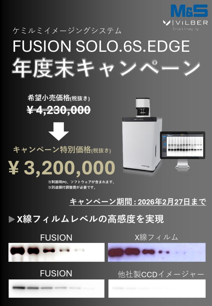 エムエス機器 ケミルミイメージングシステム「FUSION SOLO.6S.EDGE」年度末キャンペーンキャンペーン期間:2026年2月27日受注分まで